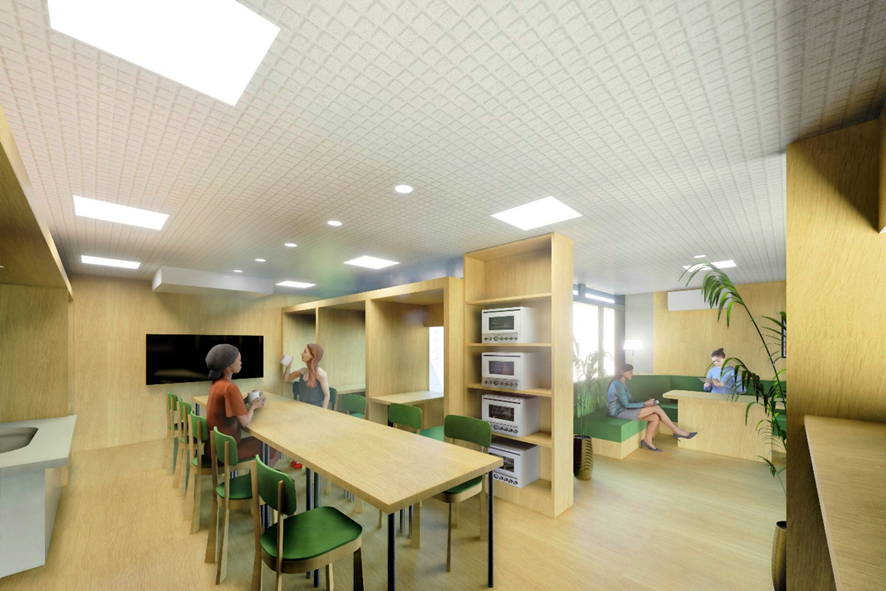 大人数で利用できるソファを設置し、ご入居者様同士の自然な交流が生まれる空間になります。