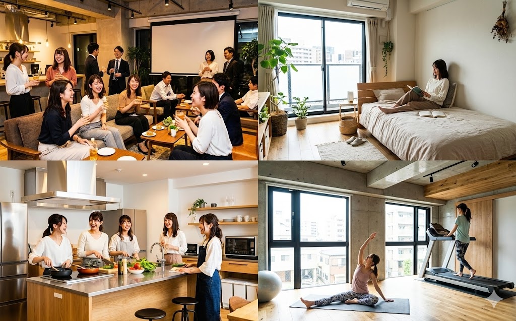 帰宅が遅くても、共用スペースで簡単に食事を温めたり、ジムで運動したり。一人暮らしより効率的に生活できます。また、困ったときに頼れる人がいる安心感は、忙しい社会人にこそ大きなメリットです。