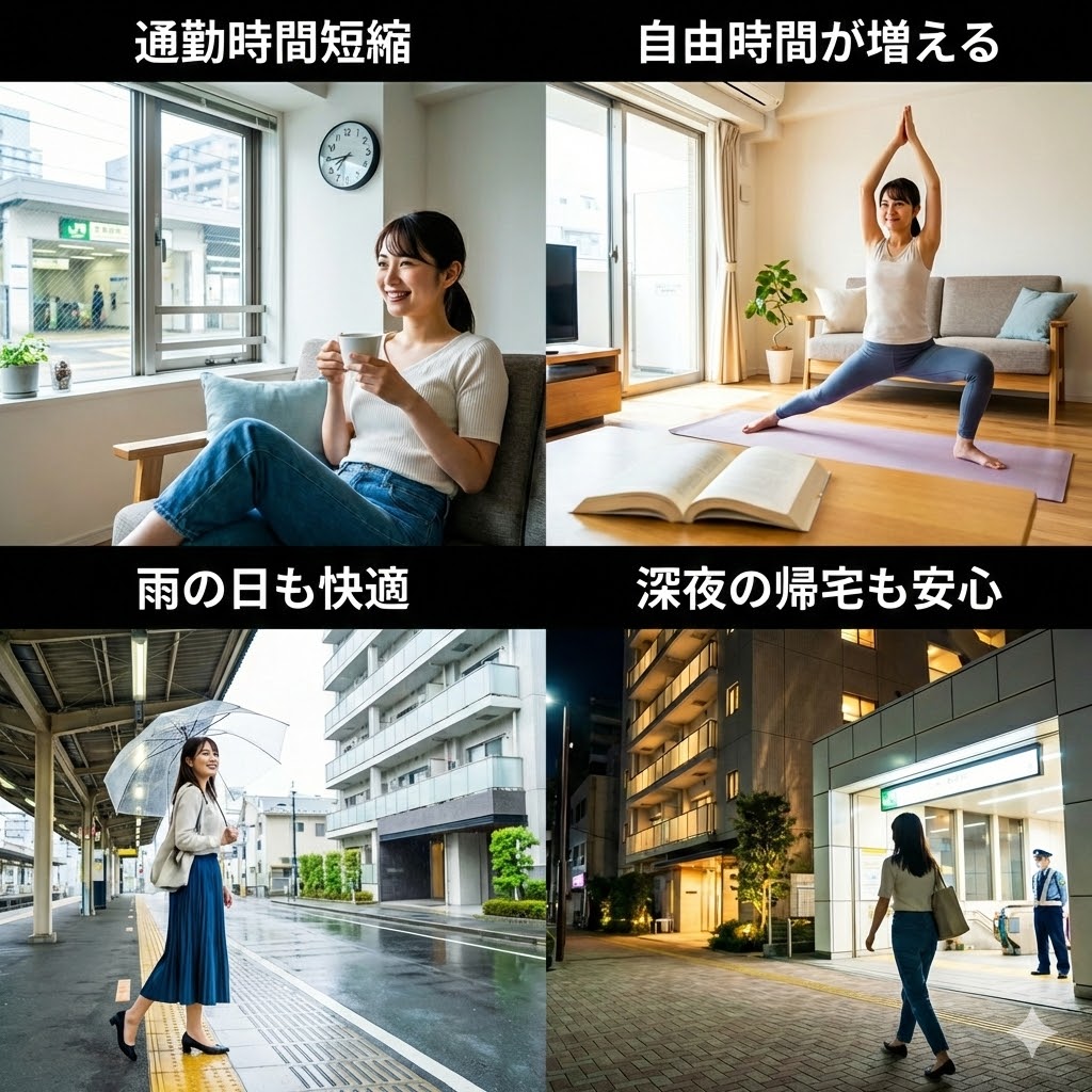特に女性にとって、深夜の帰り道が短いのは大きな安心材料です。