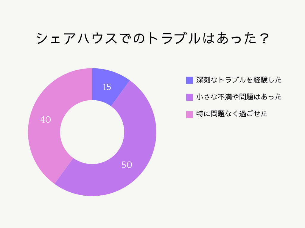 まず、シェアハウスでトラブルがどれくらい起こるのか、データを見てみましょう。