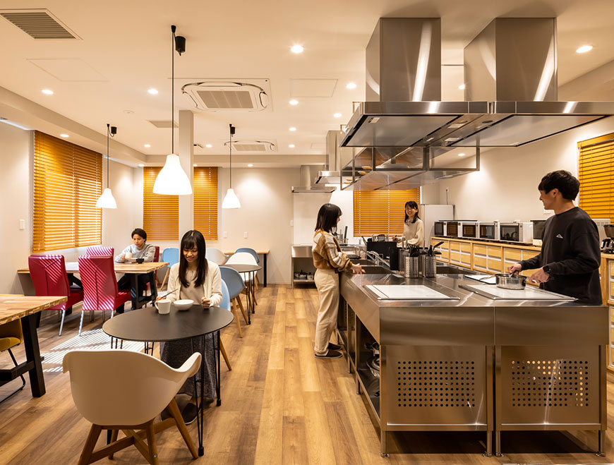 学生寮や社員寮で培った「食」へのノウハウが、シェアハウスのキッチン運営にも活かされています。清潔で使いやすいキッチン環境は、プロの運営があってこそ実現できるものです。