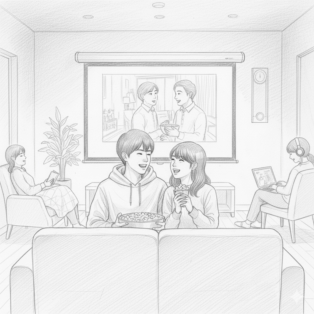 - リビングで映画鑑賞