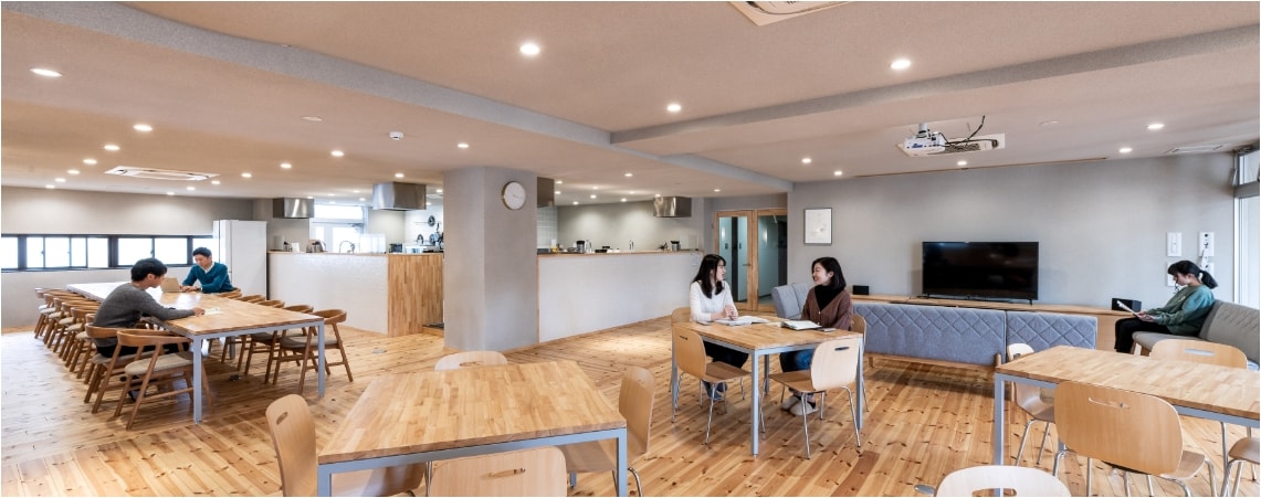 個室があるので、疲れている日や一人になりたい日は、自分の部屋で過ごせばOK。共用スペースに出るかどうかは、完全に自分の自由です。