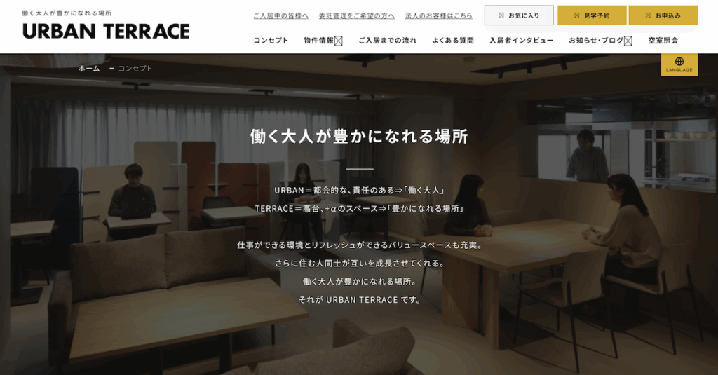 アーバンテラスは、東証PRIME上場企業『共立メンテナンス』が運営する、“大人のため”のシェアハウスブランドです。