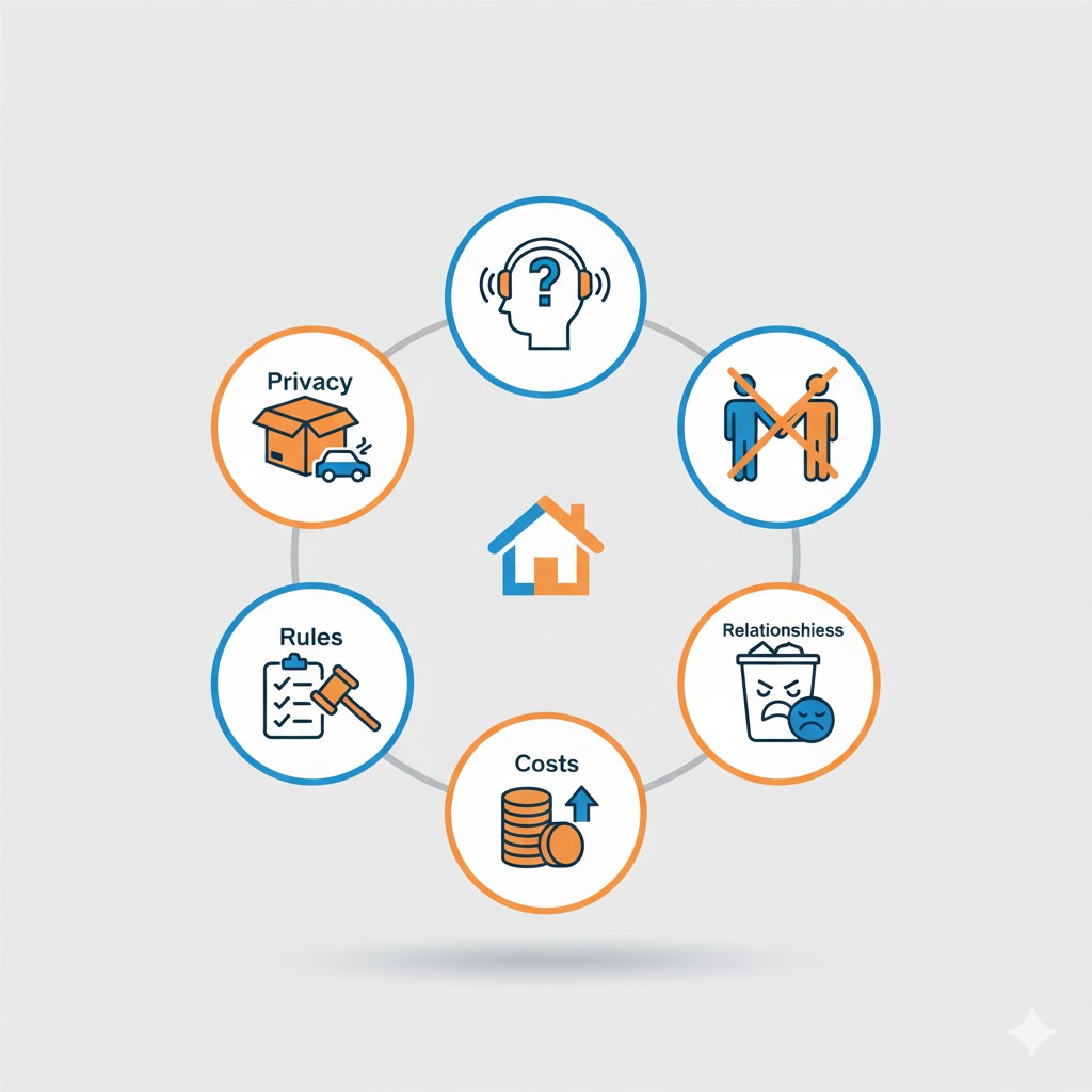 まずは、シェアハウスが「やめとけ」と言われる代表的な理由を見ていきましょう。それぞれの理由について、実際はどうなのか、どう対策すればいいのかを解説します。