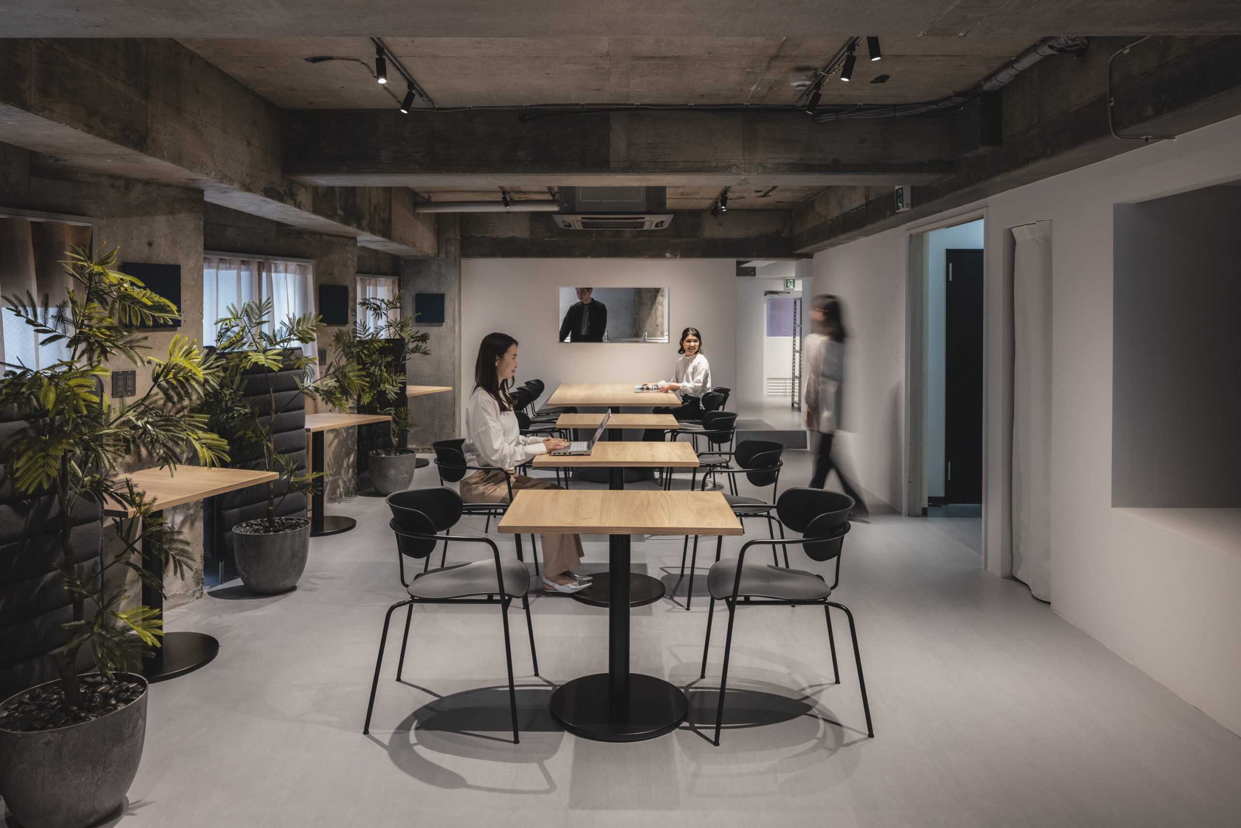 - ガラス張りのワークエリア:集中作業できる透明感ある空間